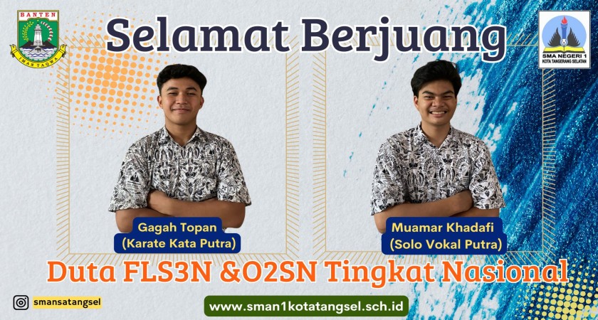 SMAN 1 Kota Tangerang Selatan bangga melepas dua putra terbaiknya, Muamar Khadafi dan Gagah Topan, sebagai Duta FLS2N dan O2SN di tingkat nasional.